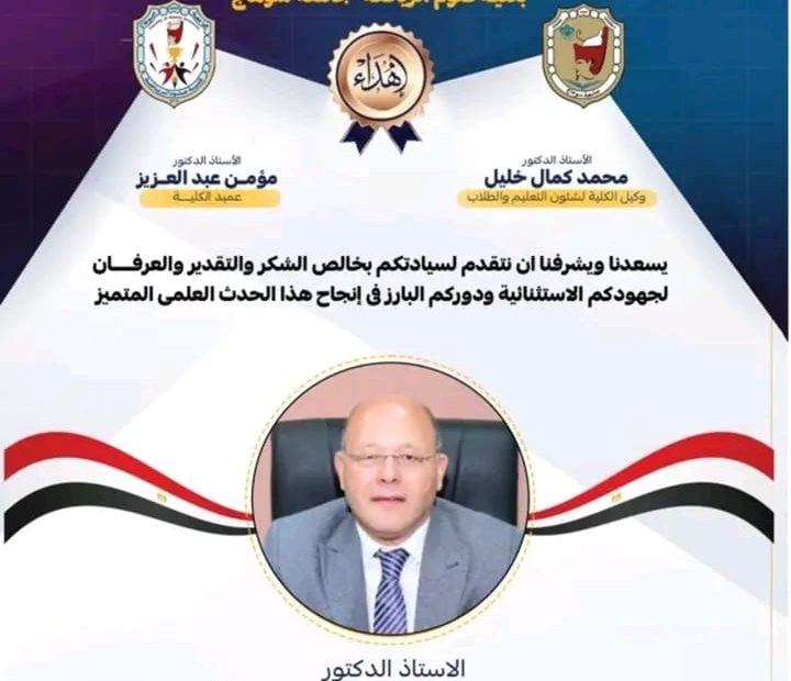 تهنئة تحت رعاية الاستاذ الدكتور حسان النعمانى رئيس الجامعه والسيد الاستاذ الدكتور/ حسين طه نائب رئيس الجامعه لشئون التعليم والطلاب تهنئ كلية علوم الرياضه جامعه سوهاج متمثله فى السيد الاستاذ الدكتور / مؤمن عبدالعزيز عميد الكليه والسيد الاستاذ الدكتور شعبان حلمى وكيل الكليه لشئون التعليم… اقرأ المزيد »تهنئة