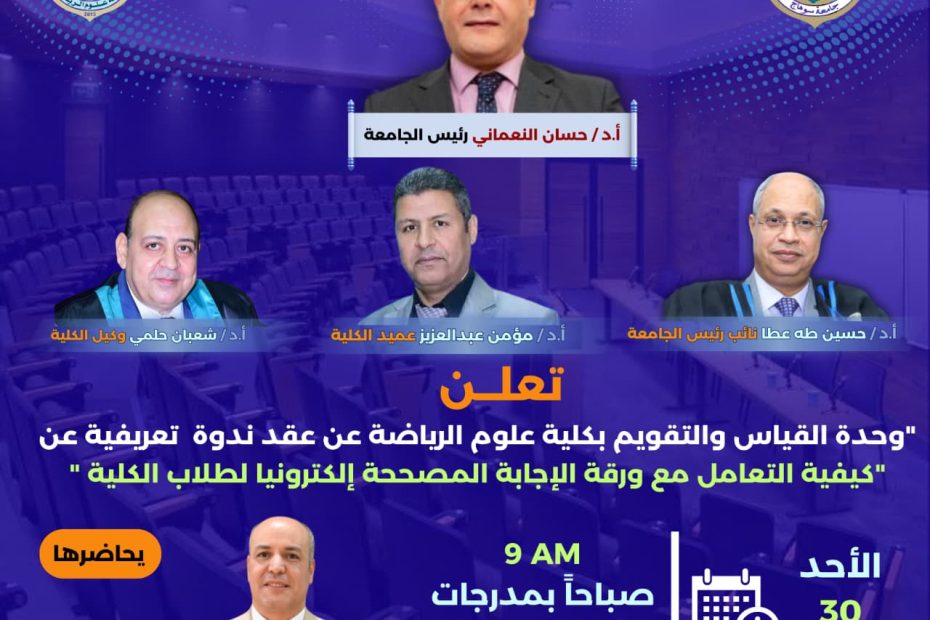 كلية علوم الرياضة تعلن عن ندوة تعريفية حول كيفية التعامل مع ورقة الإجابة المصححة إلكترونيًا
