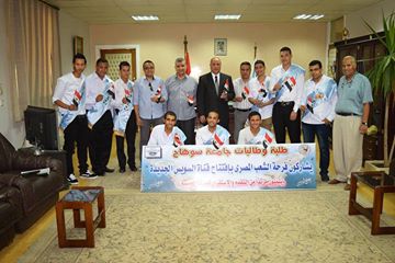 مجلس جامعة سوهاج يهدي علم الجامعة موقع من أعضائه للسيد رئيس الجمهورية عبد الفتاح السيسي