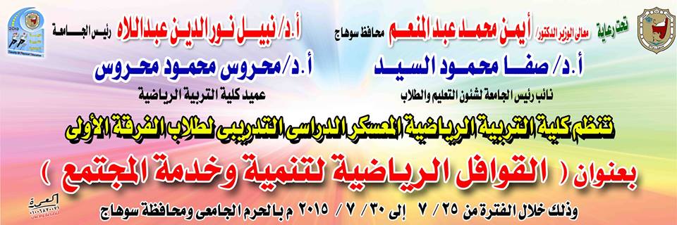 رئيس الجامعة يتفقد طلاب كلية التربية الرياضية المشاركين فى المعسكر التدريبى لخدمة المجتمع وتنمية البيئة تفقد السيد أ.د/ نبيل نور الدين .. رئيس الجامعة و السيد أ.د / صفا .. نائب رئيس الجامعة لشئون التعليم والطلاب اعمال معسكر كلية التربية الرياضية المقام للفرقة الاولي لطلبة… اقرأ المزيد »رئيس الجامعة يتفقد اعمال المعسكر التدريبي لطلاب كلية التربية الرياضية