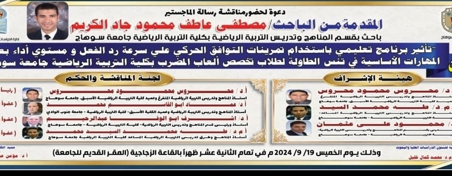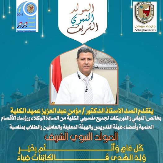 بمناسبة حلول ذكرى المولد النبوي الشريف، يتقدم السيد الاستاذ الدكتور/ مؤمن عبد العزيز عميد الكلية والسيد الاستاذ الدكتور شعبان حلمي حافظ وكيل الكلية لشئون التعليم والطلاب والسيد الاستاذ الدكتور ممدوح محمد السيد وكيل الكلية لشئون البيئة وخدمه المجتمع والسيد الاستاذ الدكتور أحمد الطاهر وبتشريف الاستاذ… اقرأ المزيد »إحتفاء التربية الرياضية بالمولد النبوى الشريف للعام الهجرى 1446 هـــ