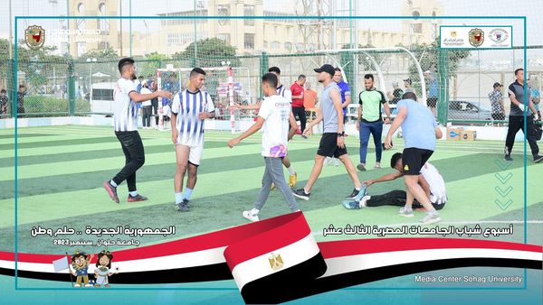 فريق جامعة سوهاج لخماسي كرة القدم يتفوق على جامعة الجلالة ويتصدر ترتيب المجموعة الأولى في منافسات أسبوع شباب الجامعات