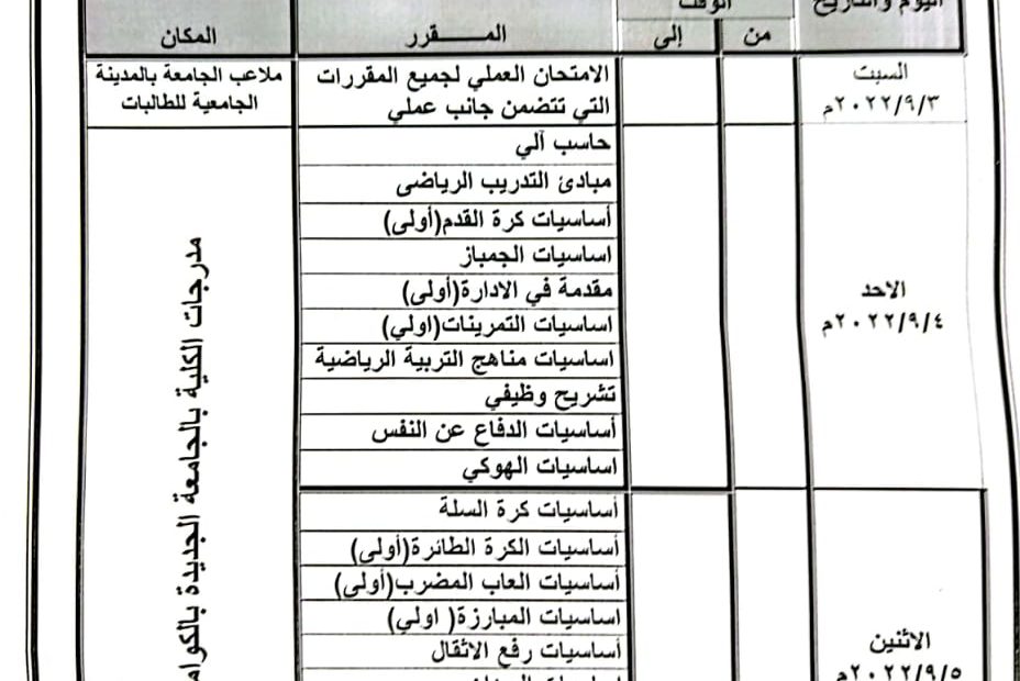 بدء إختبارات القدرات للقبول بكلية التربية الرياضية للعام الجامعى 2022-2023م