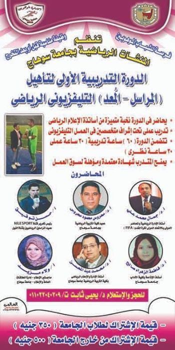 إعلان || المنشاّت الرياضية تعلن عن تنظيم الدورة التدريبية الأولى لتأهيل ‘‘المراسل-المعد‘‘ التليفزيوني الرياضي
