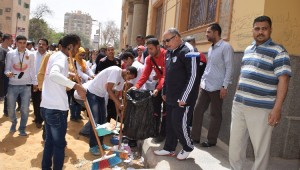 رئيس جامعة سوهاج يشارك بحملة للنظافة بمشاركة الطلاب