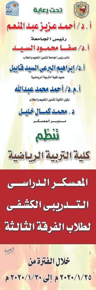 المعسكر الدراسي لطلاب الفرقة الثالثة بكلية التربية الرياضية جامعة سوهاج خلال الفترة من (25-30) يناير 2020م بمقر الجامعة بالكوامل