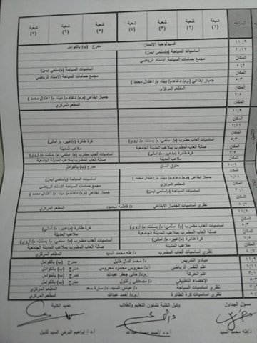 جداول محاضرات الفصل الدراسى الثانى (جميع الفرق) – العام الجامعى 2019-2020م