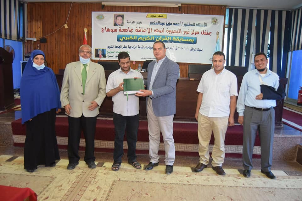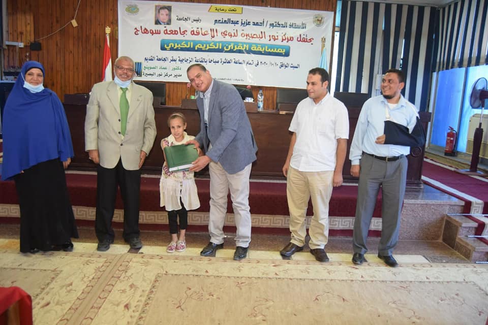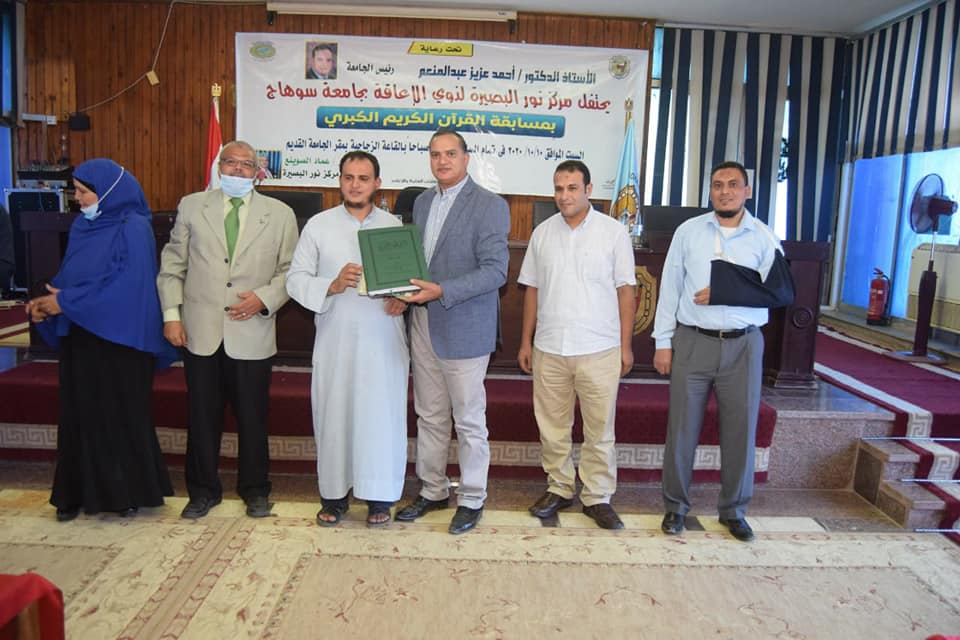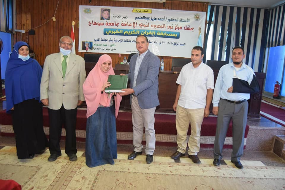 كرم الدكتور أحمد عزيز رئيس جامعة سوهاج، عصر اليوم، ١٧ فائز وفائزة من طلاب نور البصيرة لمشاركتهم في المسابقة الكبرى لحفظ القرآن الكريم تلاوةً وأحكاماً ومنحهم نسخة كاملة من القرآن الكريم بطريقة “برايل”، والتي شارك فيها فئات عمرية مختلفة من ذوي الاعاقة البصرية على مستوى محافظة سوهاج، وذلك بالقاعة الزجاجية بالحرم الجامعي القديم، بحضور الدكتور عماد الصوينع مدير مركز نور البصيرة، والدكتور عبدالله محمد يوسف والدكتور خالد فؤاد محمد ممثلا هيئة التحكيم بالمسابقة، ولفيف من ذوي الطلاب المشاركين.