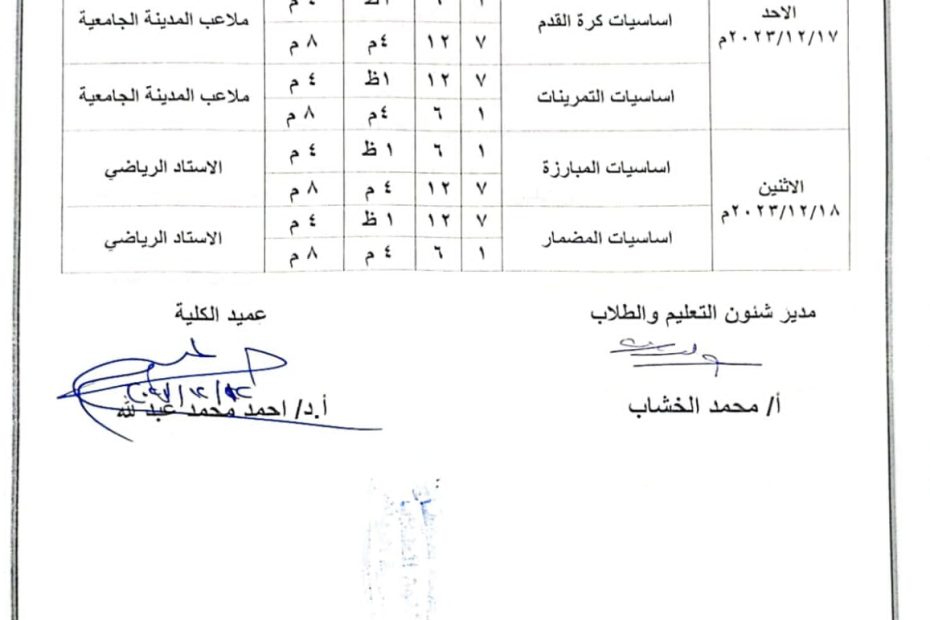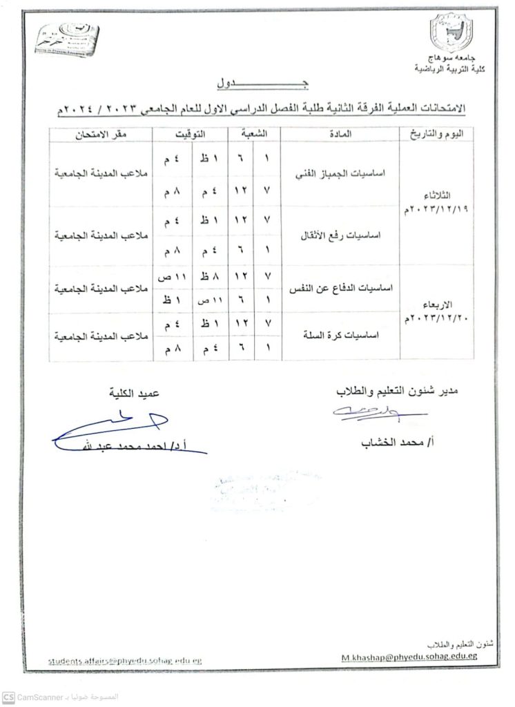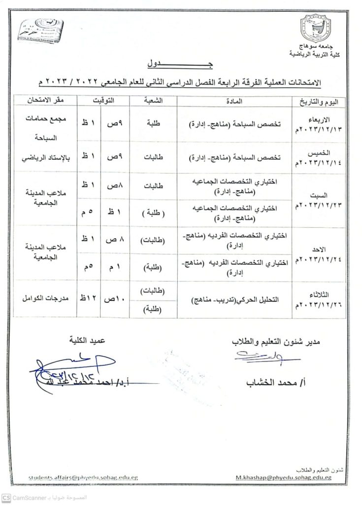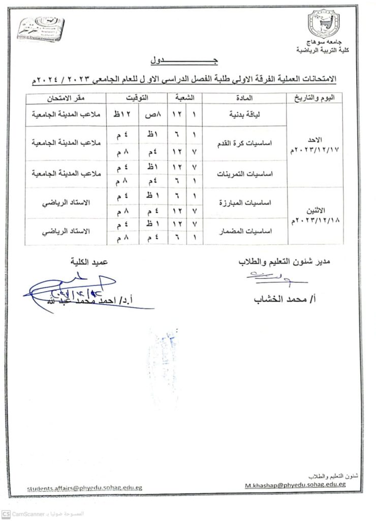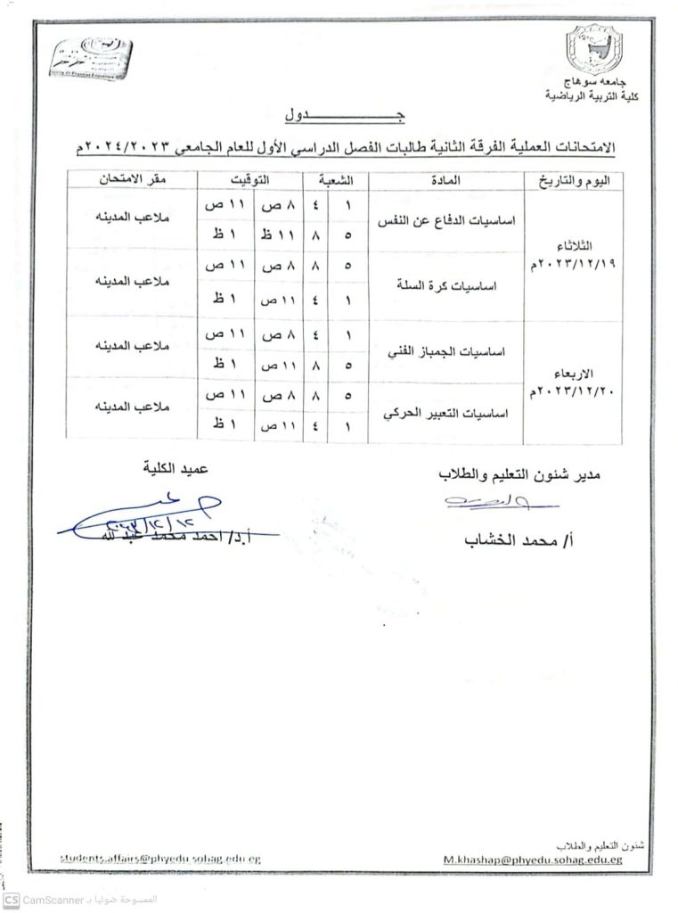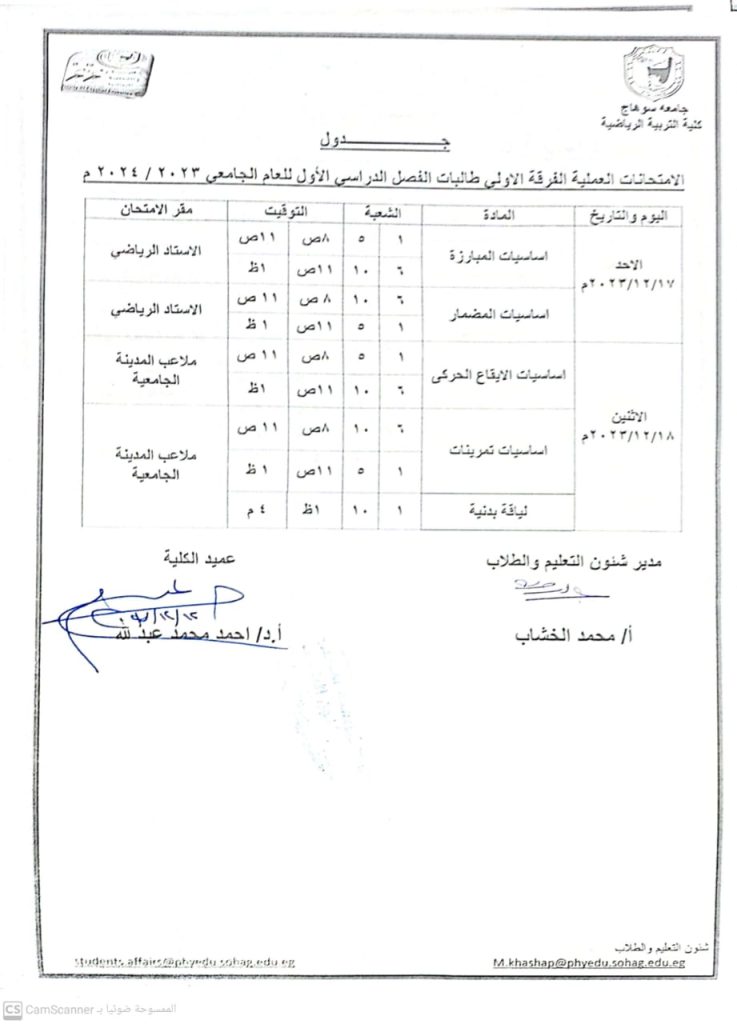 جداول الإمتحانات العملية لجميع الفرق الدراسية (طلاب-طالبات)-الفصل الدراسى الاول – العام الجامعى 2023-2024م