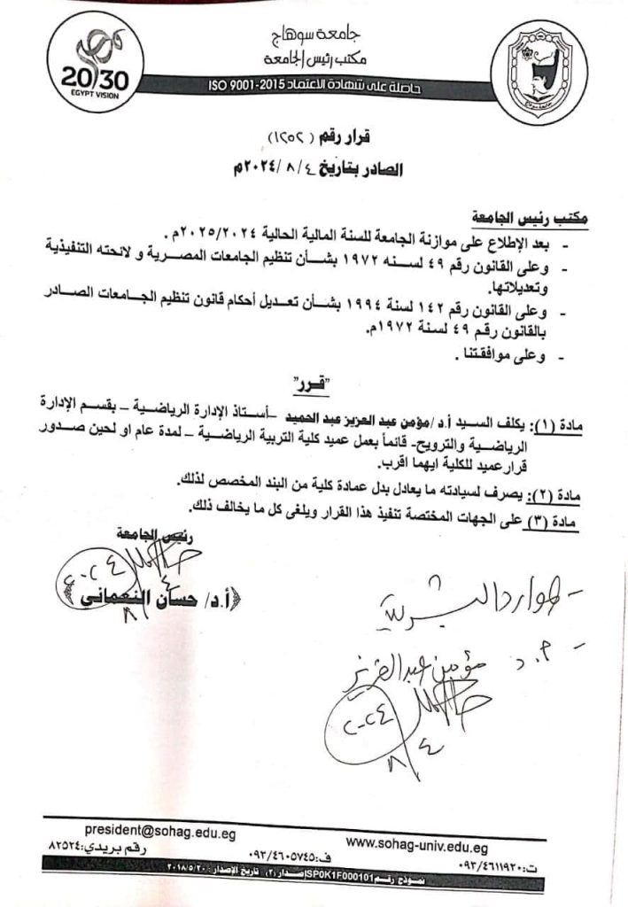الرئيسية » تكليف ا.د/مؤمن عبدالعزيز عبدالحميد قائما بعمل عميد كلية التربية الرياضية لمدة عامتكليف ا.د/مؤمن عبدالعزيز عبدالحميد قائما بعمل عميد كلية التربية الرياضية لمدة عامبواسطة البوابة الإلكترونية -كلية علوم الرياضة - جامعة سوهاج وحدة تكنولوجيا المعلومات - كلية علوم الرياضة - جامعة سوهاجتكليف ا.د/مؤمن عبدالعزيز عبدالحميد قائما بعمل عميد الكلية لمدة عام