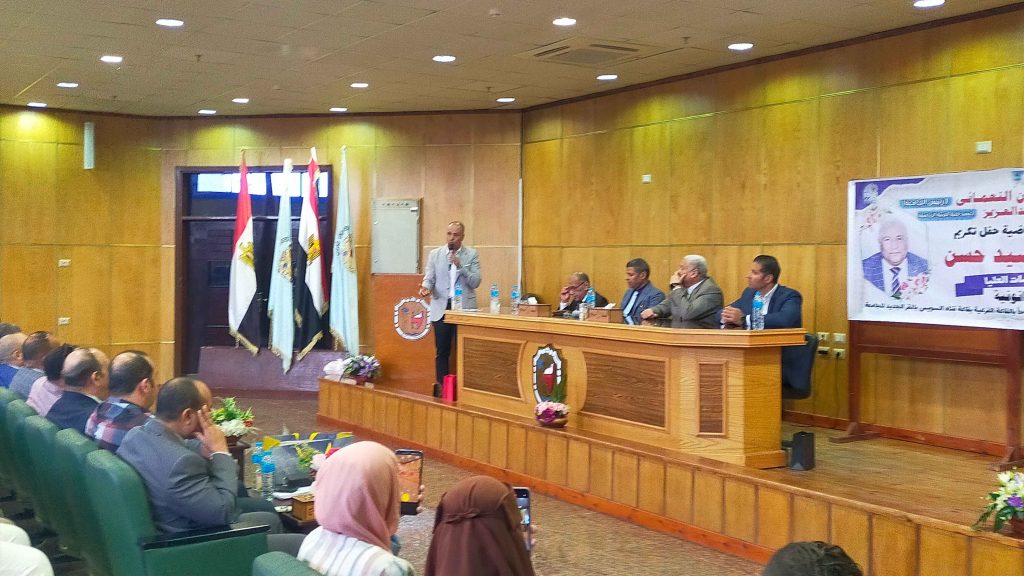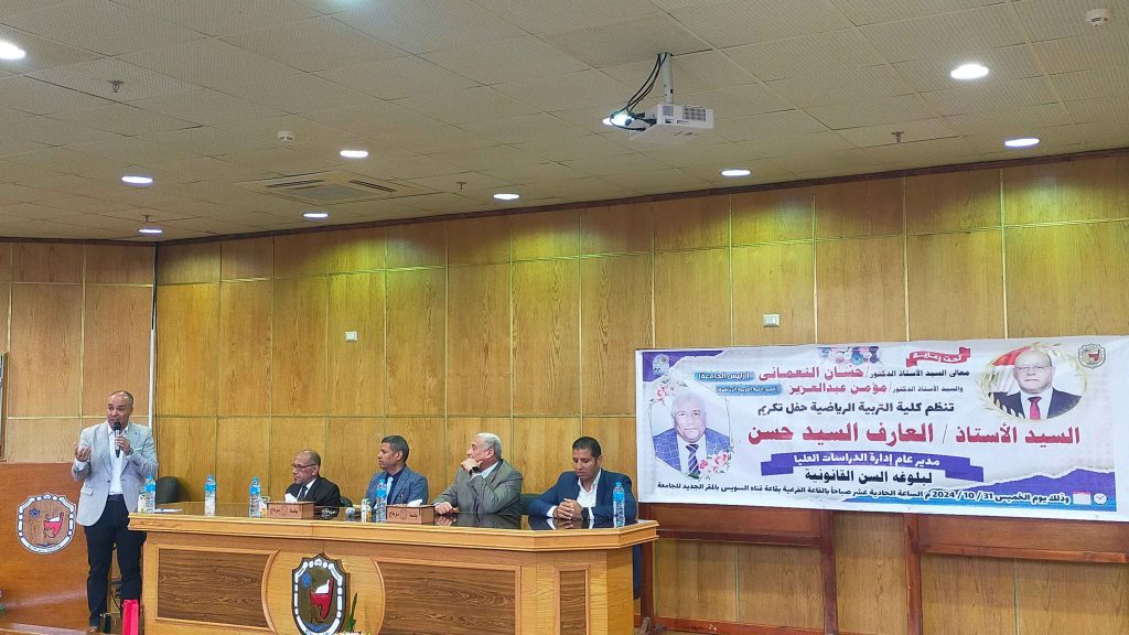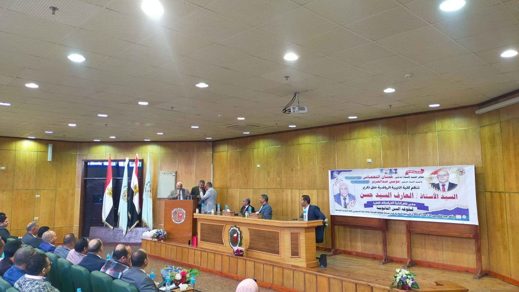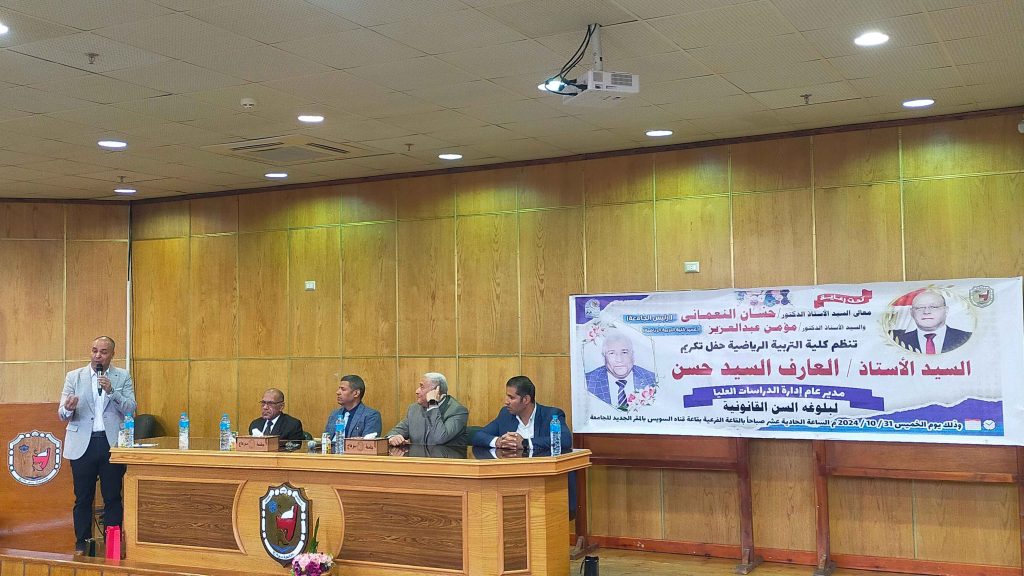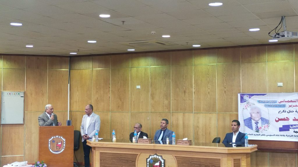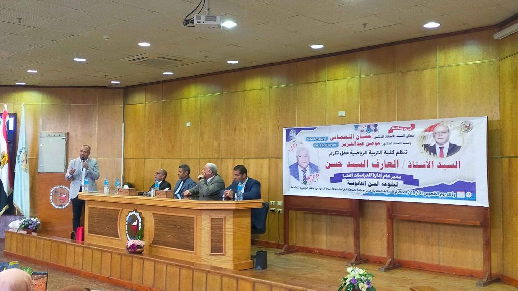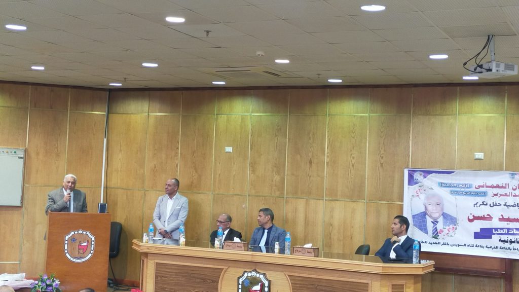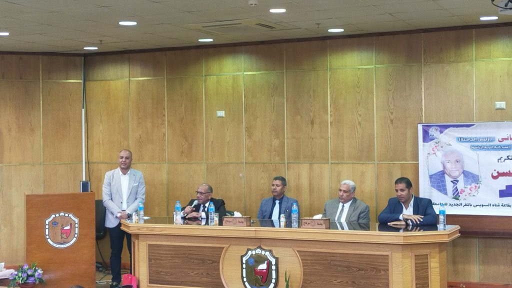 شهد صباح اليوم السيد الاستاذ الدكتور/مؤمن عبدالحميد عميد الكلية وعدد من السادة وكلاء الكلية واعضاء هيئة التدريس والجهاز الإدارى بالكلية حفل تكريم السيد الأستاذ/العارف السيد حسن مدير عام الدراسات العُليا والبحوث بالكلية ، بمناسبة بلوغه السن القانونية للتقاعد، وذلك بقاعة قناة السويس بمقر الجامعة بالكوامل وبحضور كلاً من السيد أ.د/شعبان حلمى حافظ وكيل الكلية لشئون التعليم والطلاب والسيد أ.د/محمد كمال خليل وكيل الكلية لشئون الدراسات العُليا والبحوث والسيد ا.د/ممدوح محمد السيد وكيل الكلية لشئون خدمة المجتمع وتنمية البيئة ، وكذلك عدد من رؤساء الأقسام بالكلية ونخبة من أعضاء هيئة التدريس والعاملين بالجهاز الإدارى بكلية التربية الرياضية .