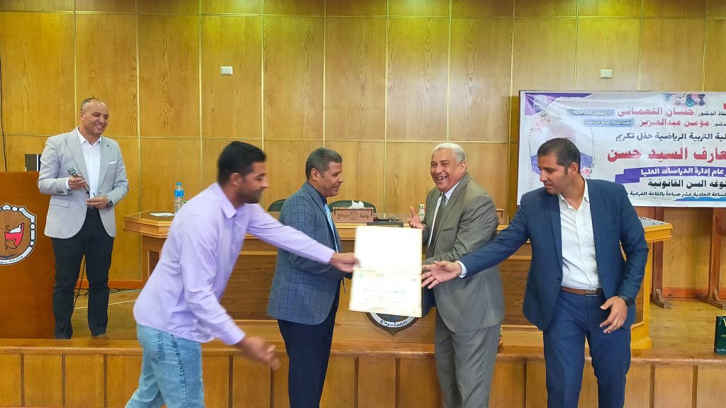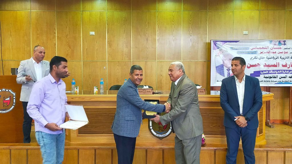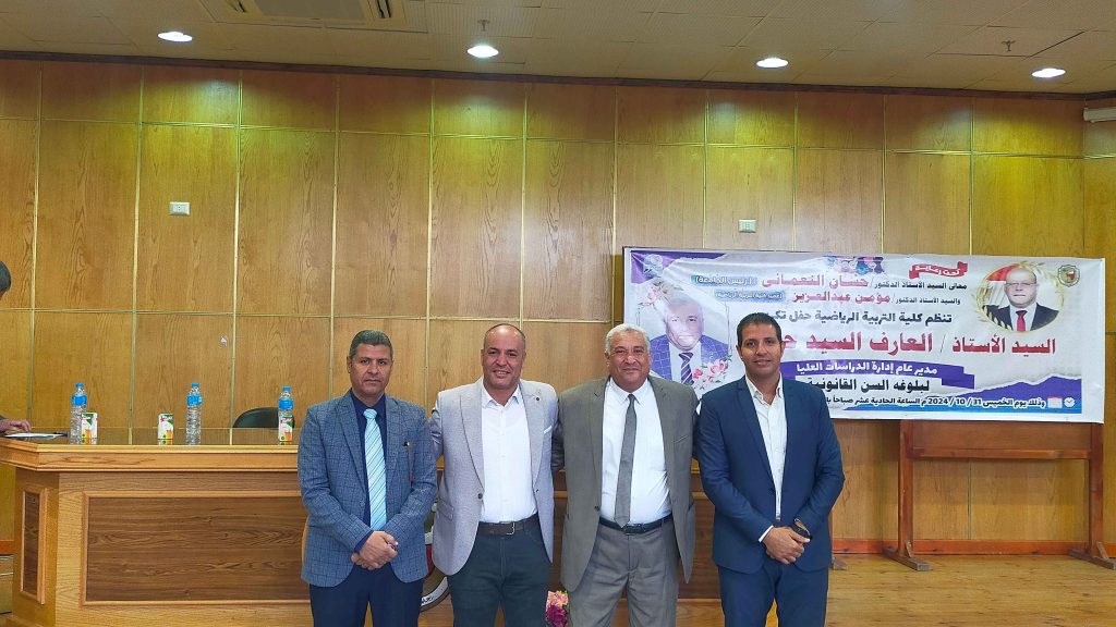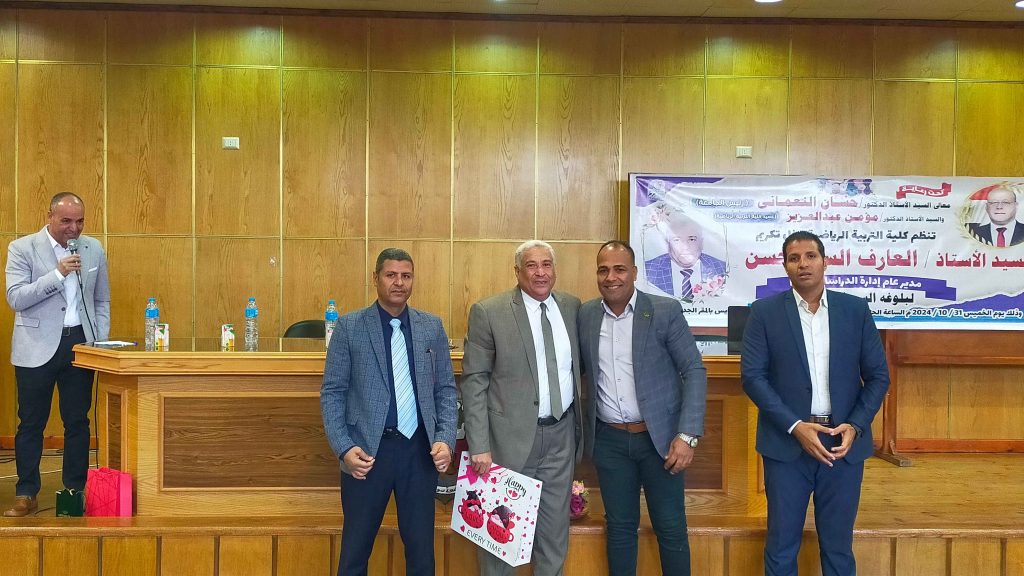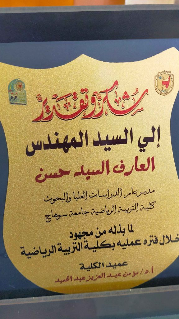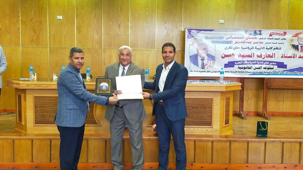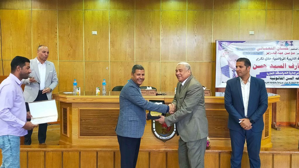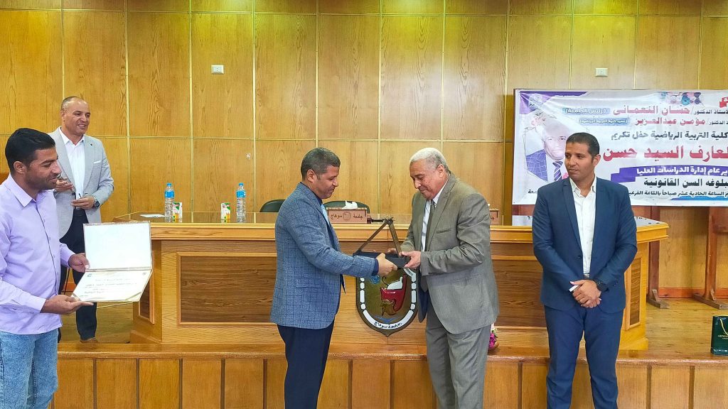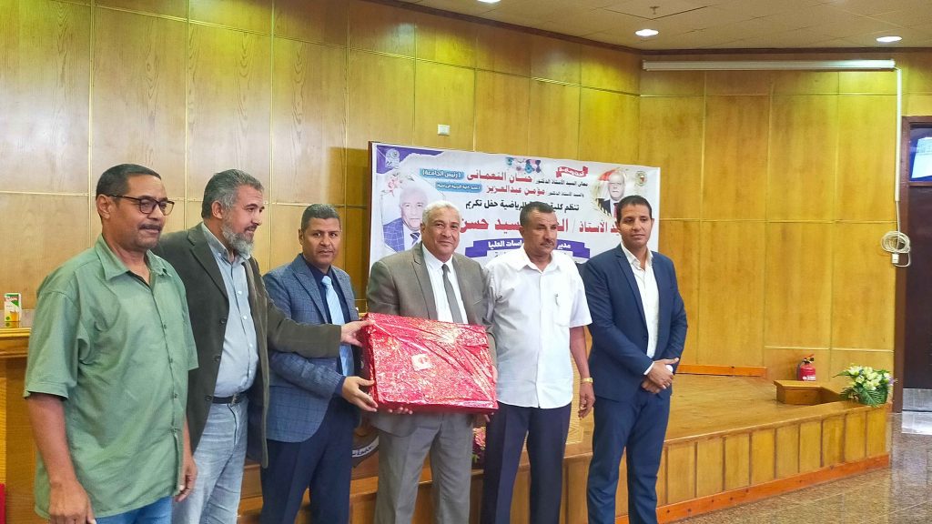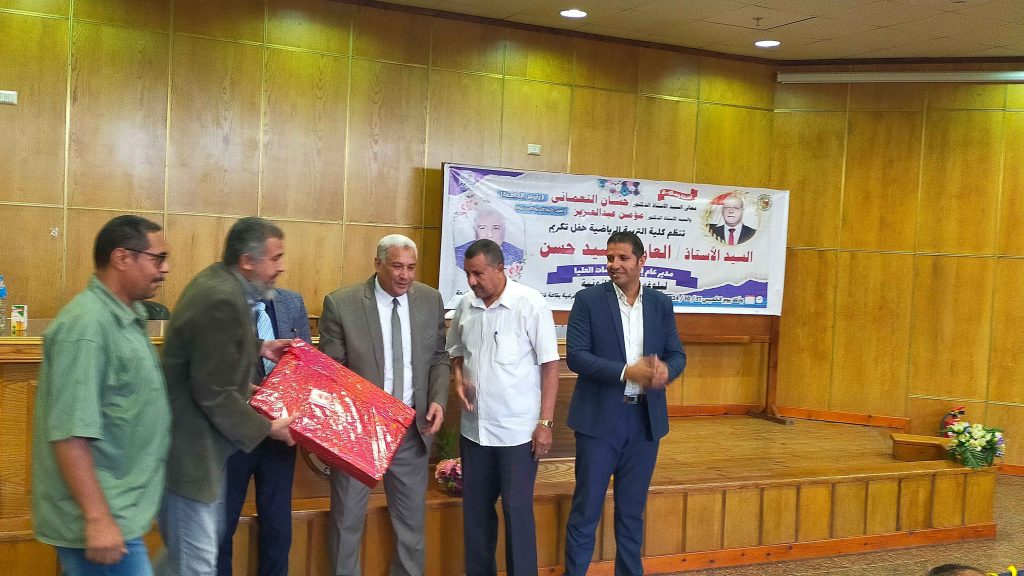 تكريم السيد الاستاذ /العارف السيد حسن مديرعام الدراسات العُليا والبحوث بكلية التربية الرياضية لبلوغه سن التقاعد