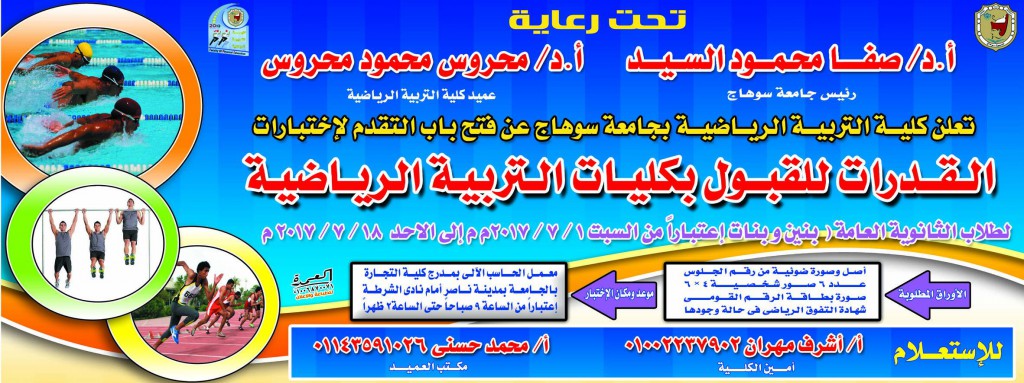 الرئيسية » اختبارات القدرات للقبول بكلية التربية الرياضيةاختبارات القدرات للقبول بكلية التربية الرياضيةبواسطة البوابة الإلكترونية -كلية علوم الرياضة - جامعة سوهاج وحدة تكنولوجيا المعلومات - كلية علوم الرياضة - جامعة سوهاج