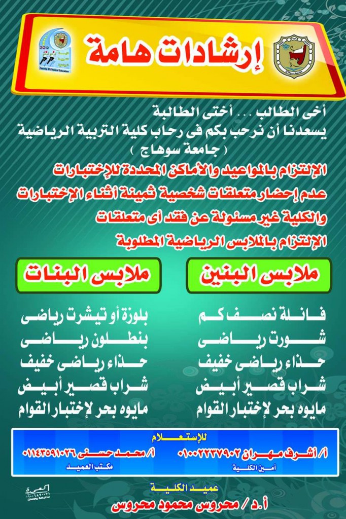 الرئيسية » ارشادات هامة لراغبي آداء اختبارات القبول بكلية التربية الرياضيةارشادات هامة لراغبي آداء اختبارات القبول بكلية التربية الرياضيةبواسطة البوابة الإلكترونية -كلية علوم الرياضة - جامعة سوهاج وحدة تكنولوجيا المعلومات - كلية علوم الرياضة - جامعة سوهاج
