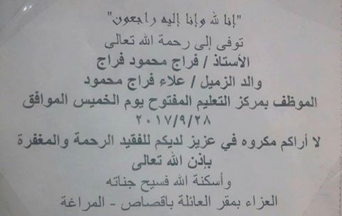 الرئيسية » عزاء واجبعزاء واجببواسطة البوابة الإلكترونية -كلية علوم الرياضة - جامعة سوهاج وحدة تكنولوجيا المعلومات - كلية علوم الرياضة - جامعة سوهاج