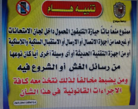 الرئيسية » تنبيه عامتنبيه عامبواسطة البوابة الإلكترونية -كلية علوم الرياضة - جامعة سوهاج وحدة تكنولوجيا المعلومات - كلية علوم الرياضة - جامعة سوهاج الجامعة تتمني لجميع الطلبة والطالبات النجاح والتوفيق خلال امتحانات الفصل الدراسي الثاني مايو 2018، وتهيب بالجميع اتباع الاجراءات المنظمة لعملية تأدية الامتحانات داخل اللجان المختلفة .