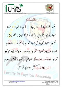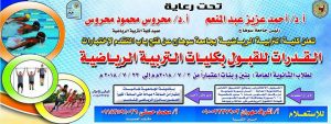 الرئيسية » إعلان هام عن موعد إختبارات القدرات للقبول بكلية التربية الرياضية للعام الجامعى 2018-2019مإعلان هام عن موعد إختبارات القدرات للقبول بكلية التربية الرياضية للعام الجامعى 2018-2019مبواسطة البوابة الإلكترونية -كلية علوم الرياضة - جامعة سوهاج وحدة تكنولوجيا المعلومات - كلية علوم الرياضة - جامعة سوهاج