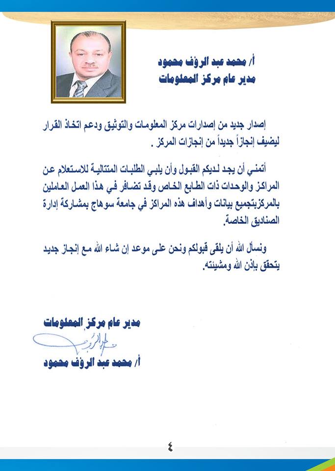 الرئيسية » دليل الصناديق الخاصة والوحدات ذات الطابع الخاص بجامعة سوهاجدليل الصناديق الخاصة والوحدات ذات الطابع الخاص بجامعة سوهاجبواسطة البوابة الإلكترونية -كلية علوم الرياضة - جامعة سوهاج وحدة تكنولوجيا المعلومات - كلية علوم الرياضة - جامعة سوهاج