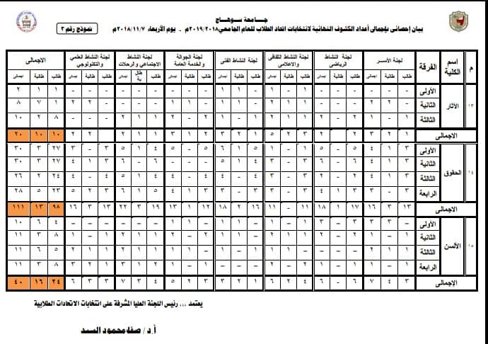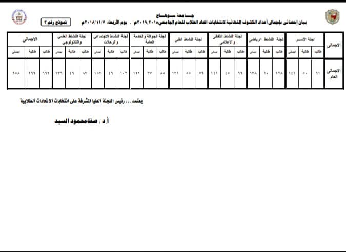 الرئيسية » الكشوف النهائية لانتخابات اتحاد طلاب جامعة سوهاج 2018-2019مالكشوف النهائية لانتخابات اتحاد طلاب جامعة سوهاج 2018-2019مبواسطة البوابة الإلكترونية -كلية علوم الرياضة - جامعة سوهاج وحدة تكنولوجيا المعلومات - كلية علوم الرياضة - جامعة سوهاج الكشوف النهائية لانتخابات اتحاد طلاب جامعة سوهاج 2018-2019م