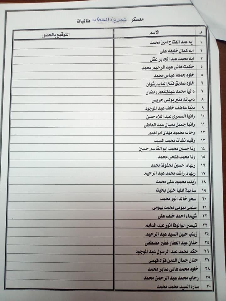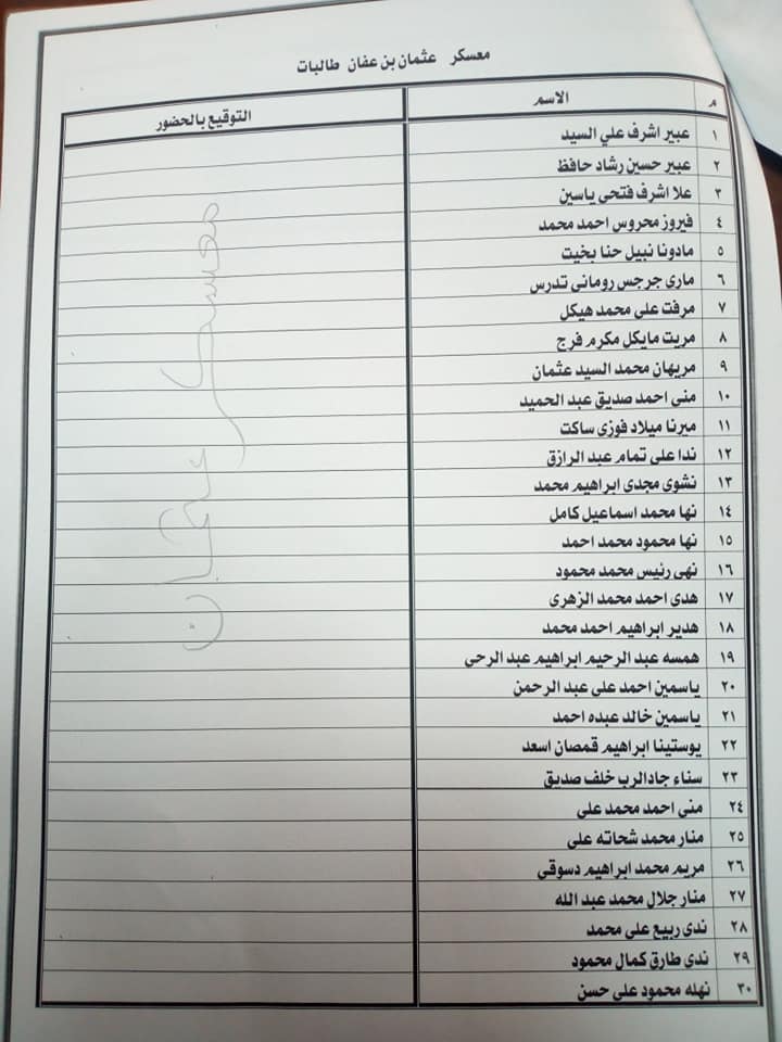 لذا نرجوا من الاخوة والاخوات الالتزام بالمعسكر وقوانينه