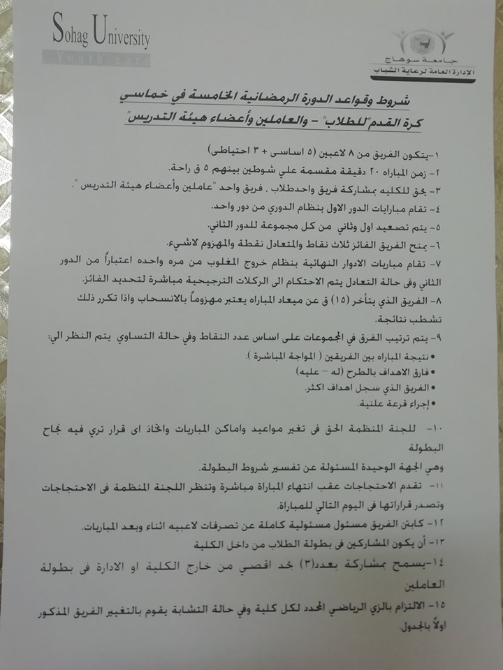 شروط وقواعد الدورة الرمضانية وجدول المباريات