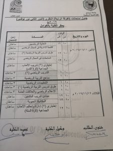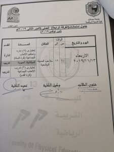 الرئيسية » جدول إمتحانات الدور الثانى(دور نوفمبر 2019م – نظرى/عملى) لطلاب الفرقة الرابعةجدول إمتحانات الدور الثانى(دور نوفمبر 2019م – نظرى/عملى) لطلاب الفرقة الرابعةبواسطة البوابة الإلكترونية -كلية علوم الرياضة - جامعة سوهاج وحدة تكنولوجيا المعلومات - كلية علوم الرياضة - جامعة سوهاج